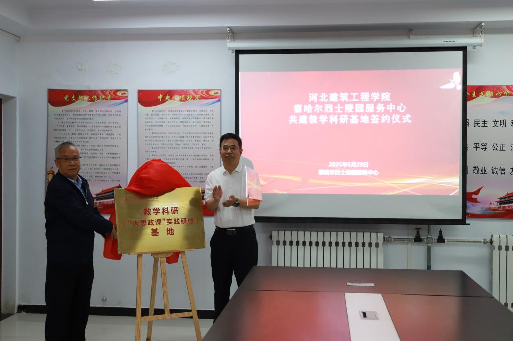 5月29日,我校在察哈尔烈士陵园建立教学科研(“大思政课”实践研修)基地。校党委副书记尹万玉、张家口市退役军人事务局二级调研员岳永星参加了签字与揭牌仪式,马克思主义学院领导、教师代表和察哈尔烈士陵园服务中心领导参加了活动。